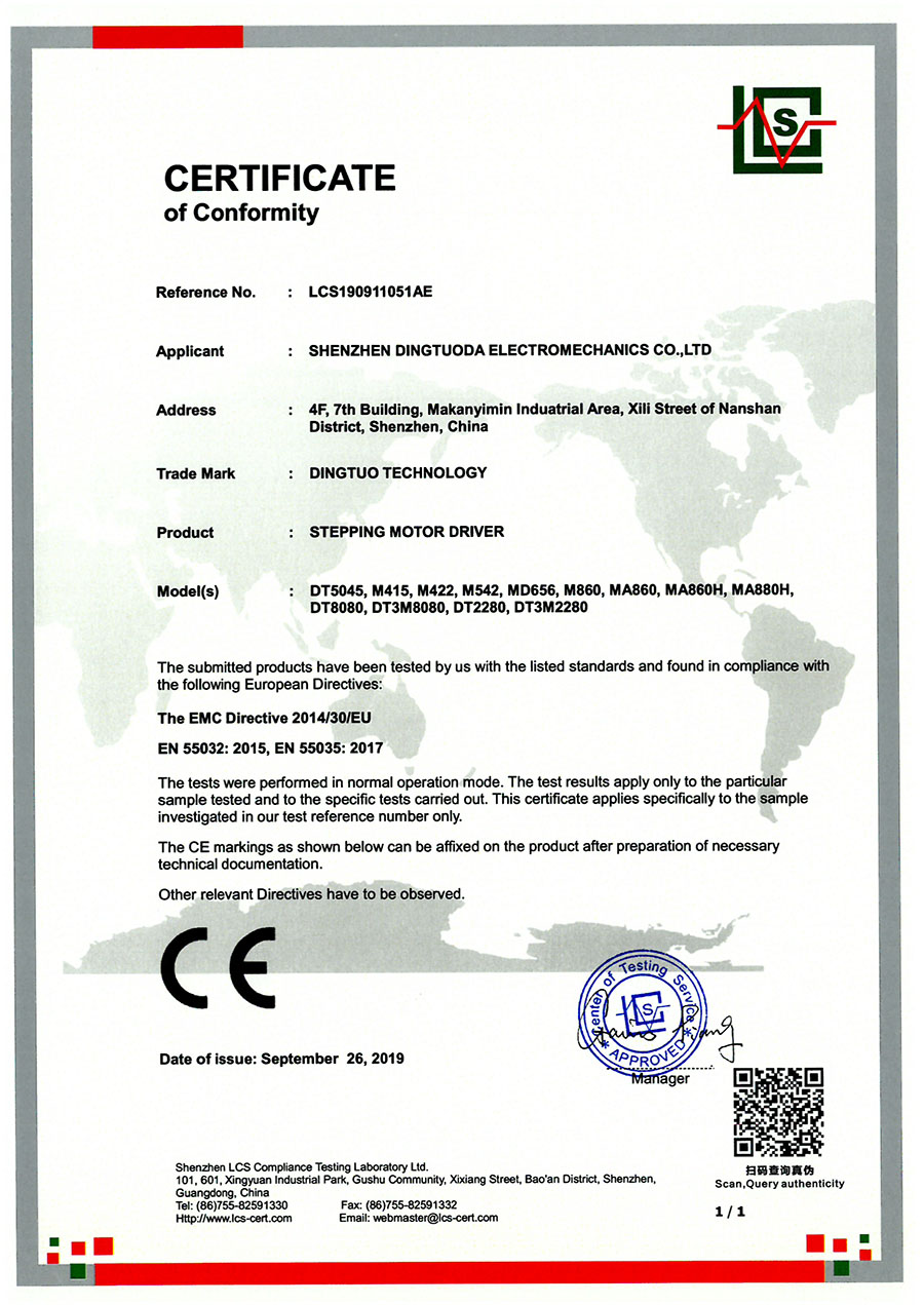 步進驅(qū)動器CE認證證書