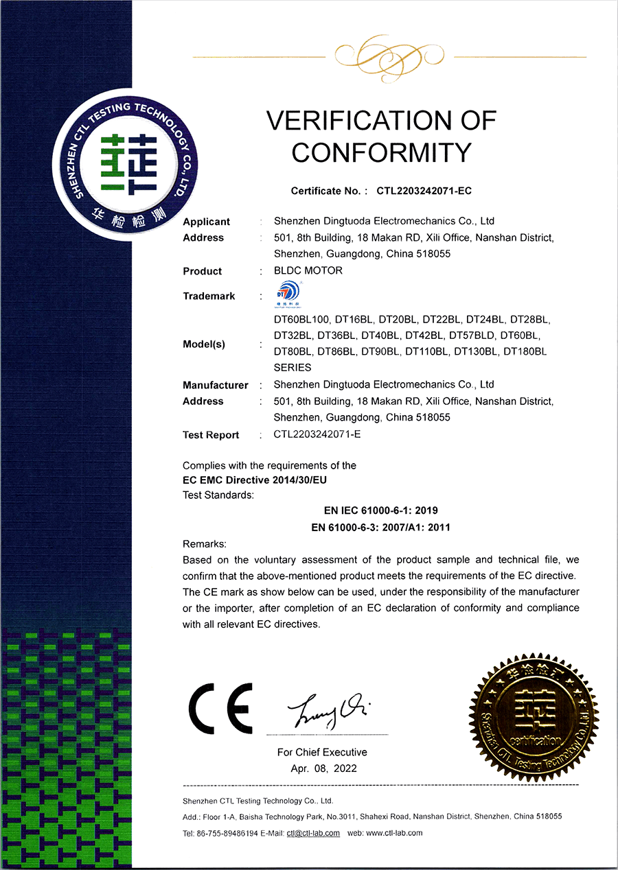 首頁->產(chǎn)品認證->無刷電機CE認證證書